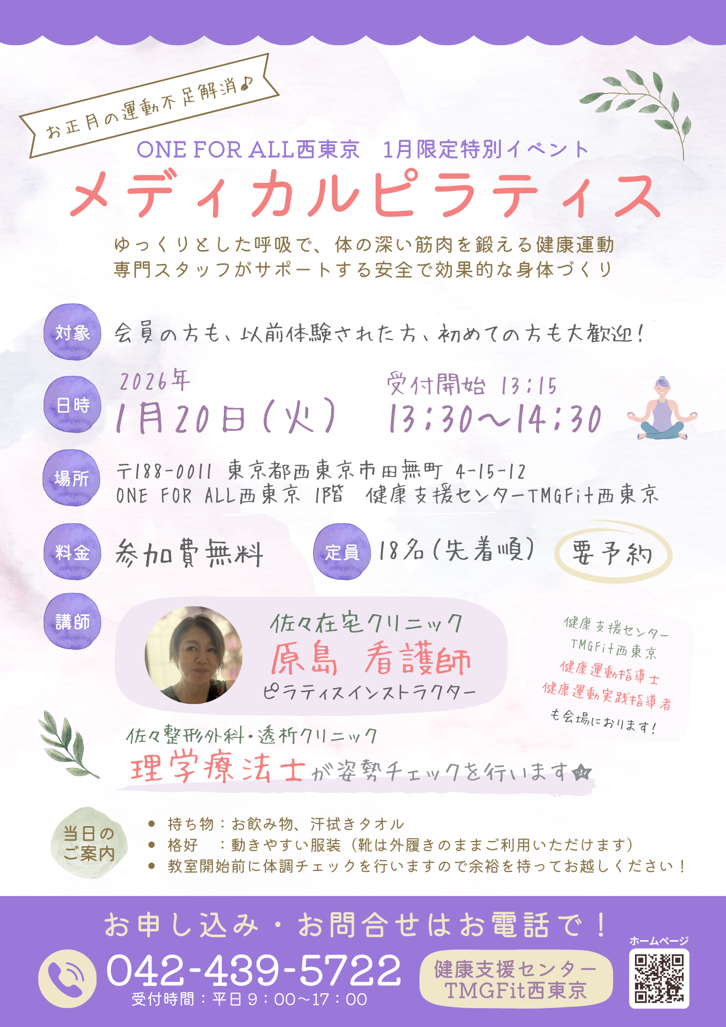 健康支援センターTMGFit西東京にて「1月限定特別イベント☆メディカルピラティス」を開催いたします!