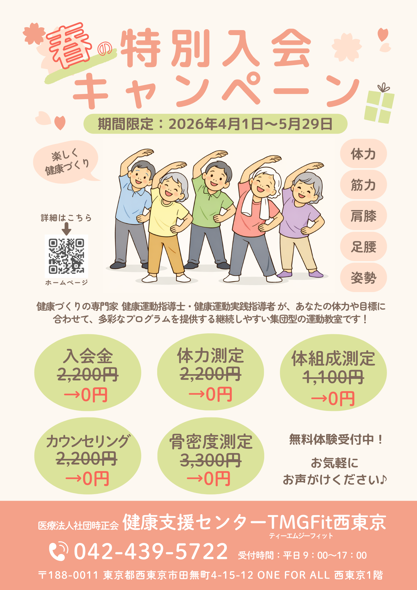 健康支援センター TMGFit西東京【春の特別入会キャンペーンのご案内🌸】